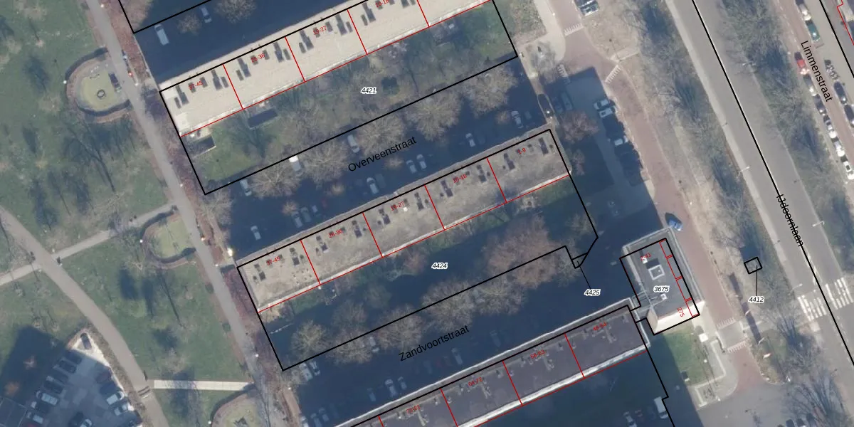Overveenstraat 20 is gelegen op kadastraal perceel ASD31AL4424. Deze kadastrale aanduiding is uniek en wordt gebruikt door het Kadaster om eigendomsrechten en andere zakelijke rechten vast te leggen. Het perceel maakt onderdeel uit van de kadastrale gemeente Amsterdam.