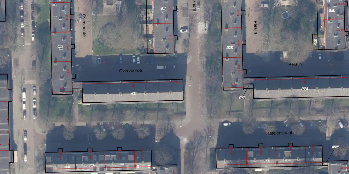 Overvoorde 1 is gelegen op kadastraal perceel ASD30AK695. Deze kadastrale aanduiding is uniek en wordt gebruikt door het Kadaster om eigendomsrechten en andere zakelijke rechten vast te leggen. Het perceel maakt onderdeel uit van de kadastrale gemeente Amsterdam.