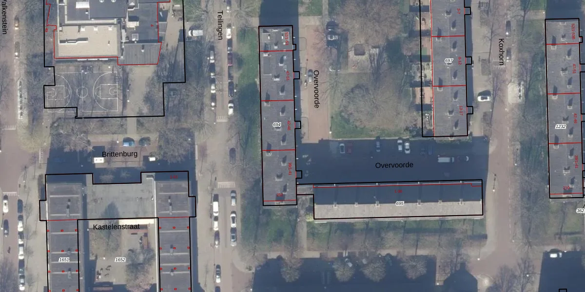 Het perceel waarop Overvoorde 42 staat heeft een oppervlakte van 723 m². Dit is een groot perceel. De perceeloppervlakte wordt geregistreerd door het Kadaster. Gedetailleerde informatie over de maten van dit perceel kunt u vinden in het rapport Kadastrale kaart met maatvoering van Overvoorde 42.