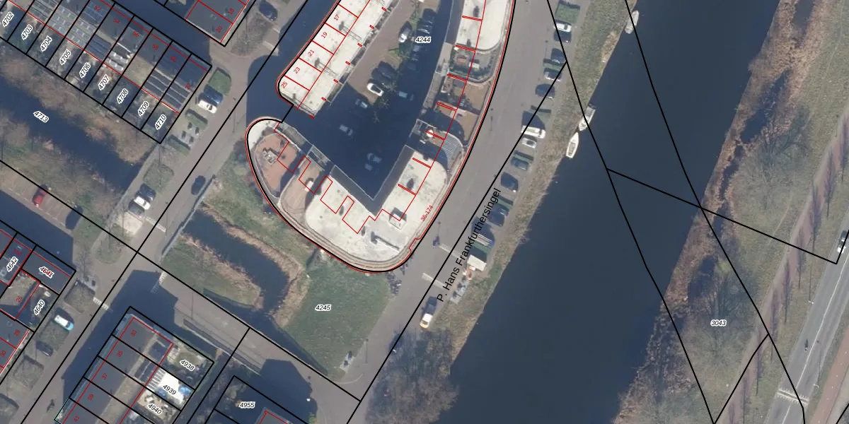 Het perceel waarop P. Hans Frankfurthersingel 106 staat heeft een oppervlakte van 4058 m². Dit is een zeer groot perceel. De perceeloppervlakte wordt geregistreerd door het Kadaster. Gedetailleerde informatie over de maten van dit perceel kunt u vinden in het rapport Kadastrale kaart met maatvoering van P. Hans Frankfurthersingel 106.