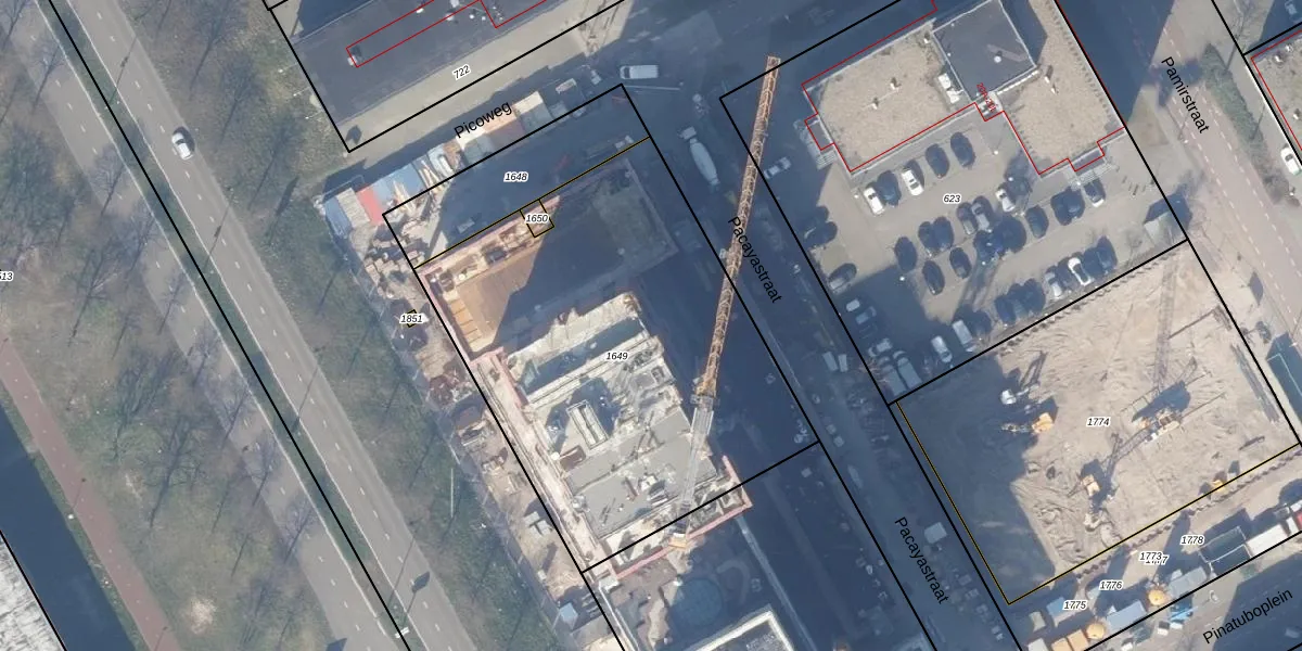 Het perceel waarop Pacayastraat 2-B-8 staat heeft een oppervlakte van 2215 m². Dit is een zeer groot perceel. De perceeloppervlakte wordt geregistreerd door het Kadaster. Gedetailleerde informatie over de maten van dit perceel kunt u vinden in het rapport Kadastrale kaart met maatvoering van Pacayastraat 2-B-8.