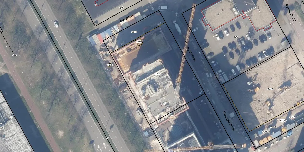 Het perceel waarop Pacayastraat 2-B-19 staat heeft een oppervlakte van 2215 m². Dit is een zeer groot perceel. De perceeloppervlakte wordt geregistreerd door het Kadaster. Gedetailleerde informatie over de maten van dit perceel kunt u vinden in het rapport Kadastrale kaart met maatvoering van Pacayastraat 2-B-19.