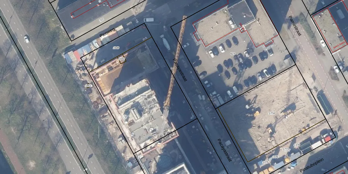 Het perceel waarop Pacayastraat 2-C-7 staat heeft een oppervlakte van 2215 m². Dit is een zeer groot perceel. De perceeloppervlakte wordt geregistreerd door het Kadaster. Gedetailleerde informatie over de maten van dit perceel kunt u vinden in het rapport Kadastrale kaart met maatvoering van Pacayastraat 2-C-7.