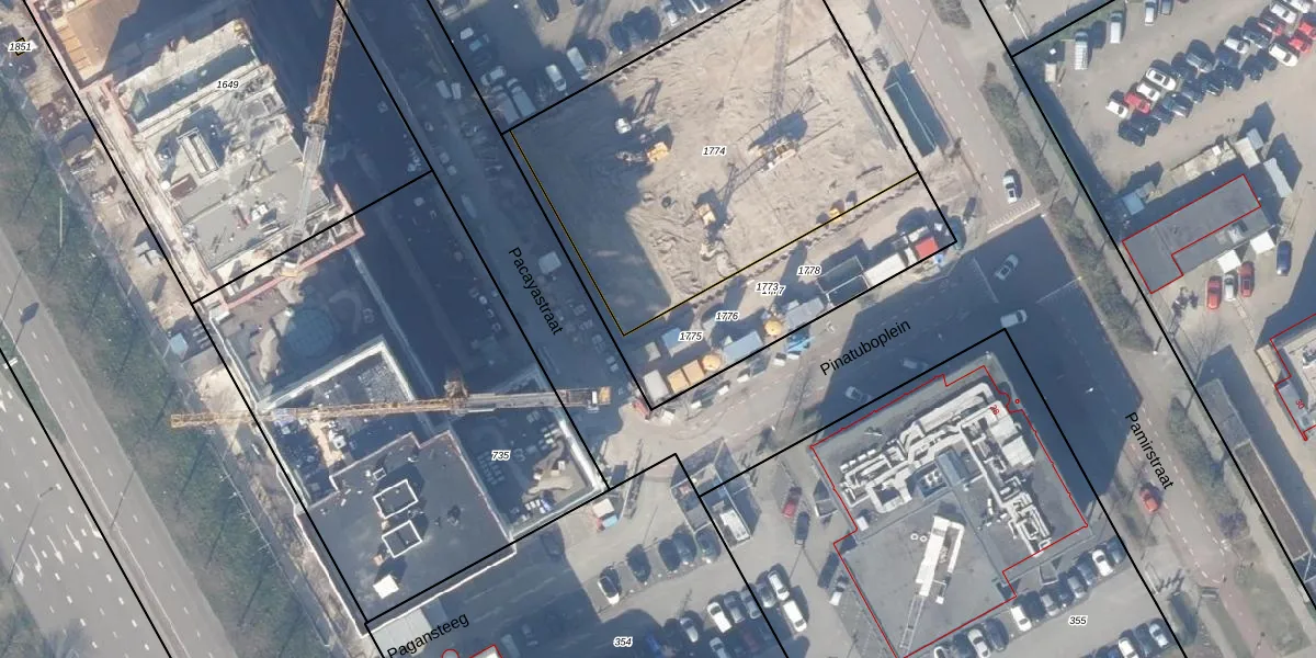 Het perceel waarop Pacayastraat 7-E-5 staat heeft een oppervlakte van 690 m². Dit is een groot perceel. De perceeloppervlakte wordt geregistreerd door het Kadaster. Gedetailleerde informatie over de maten van dit perceel kunt u vinden in het rapport Kadastrale kaart met maatvoering van Pacayastraat 7-E-5.