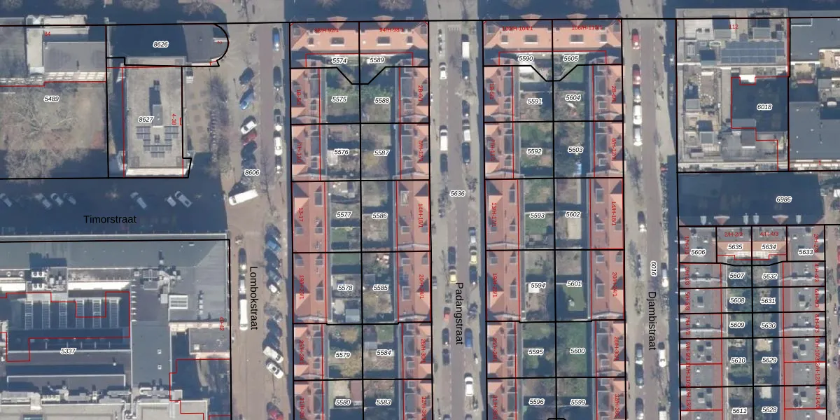 Padangstraat 16 is gelegen op kadastraal perceel ASD15S5586. Deze kadastrale aanduiding is uniek en wordt gebruikt door het Kadaster om eigendomsrechten en andere zakelijke rechten vast te leggen. Het perceel maakt onderdeel uit van de kadastrale gemeente Amsterdam.