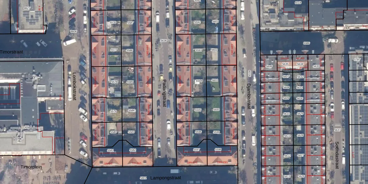 Het perceel waarop Padangstraat 23-H staat heeft een oppervlakte van 281 m². Dit is een middelgroot perceel. De perceeloppervlakte wordt geregistreerd door het Kadaster. Gedetailleerde informatie over de maten van dit perceel kunt u vinden in het rapport Kadastrale kaart met maatvoering van Padangstraat 23-H.