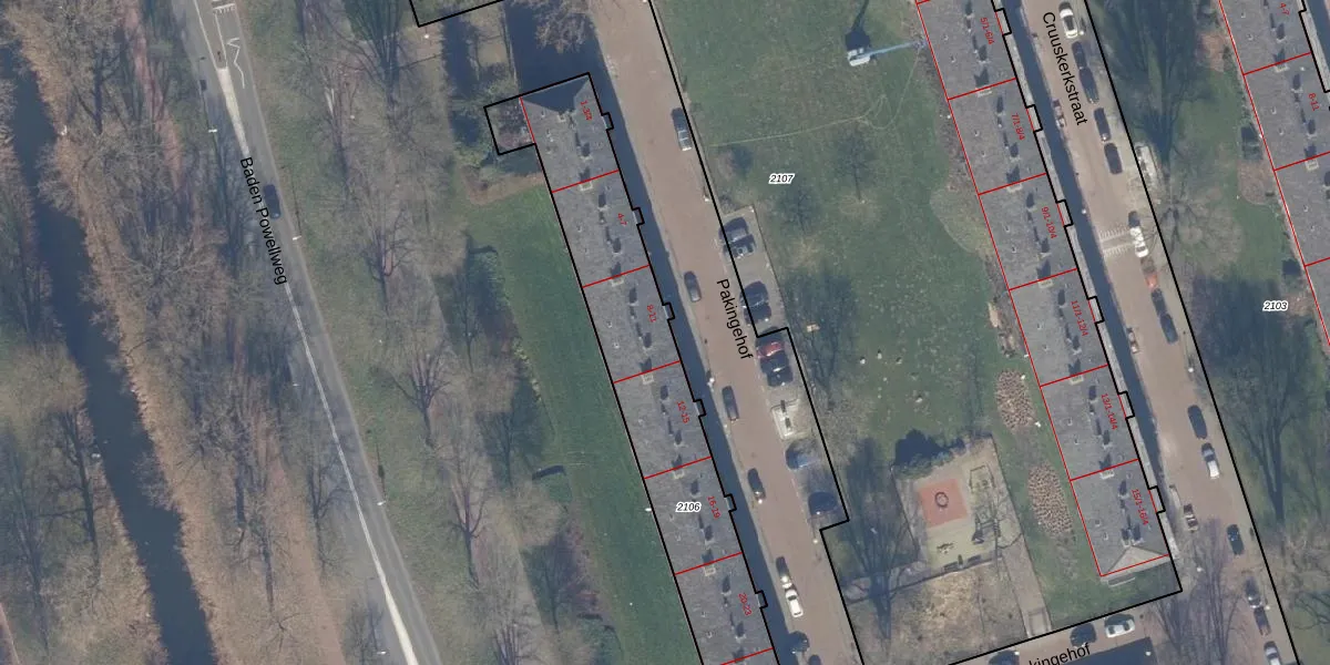 Het perceel waarop Pakingehof 10-4 staat heeft een oppervlakte van 1382 m². Dit is een zeer groot perceel. De perceeloppervlakte wordt geregistreerd door het Kadaster. Gedetailleerde informatie over de maten van dit perceel kunt u vinden in het rapport Kadastrale kaart met maatvoering van Pakingehof 10-4.