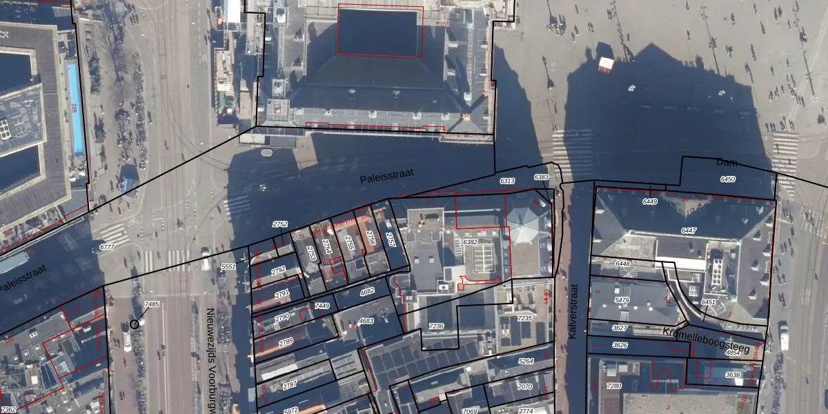 Paleisstraat 5 is gelegen op kadastraal perceel ASD04F6382. Deze kadastrale aanduiding is uniek en wordt gebruikt door het Kadaster om eigendomsrechten en andere zakelijke rechten vast te leggen. Het perceel maakt onderdeel uit van de kadastrale gemeente Amsterdam.