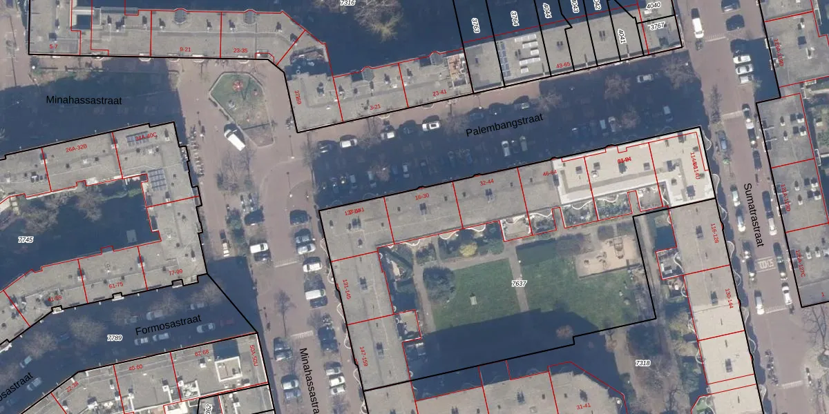 Palembangstraat 16 is gelegen op kadastraal perceel ASD19W7637. Deze kadastrale aanduiding is uniek en wordt gebruikt door het Kadaster om eigendomsrechten en andere zakelijke rechten vast te leggen. Het perceel maakt onderdeel uit van de kadastrale gemeente Amsterdam.