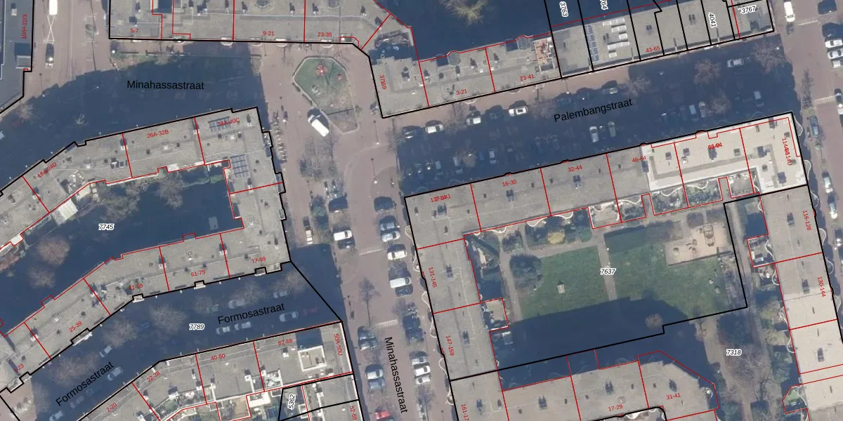 Palembangstraat 4 is gelegen op kadastraal perceel ASD19W7637. Deze kadastrale aanduiding is uniek en wordt gebruikt door het Kadaster om eigendomsrechten en andere zakelijke rechten vast te leggen. Het perceel maakt onderdeel uit van de kadastrale gemeente Amsterdam.