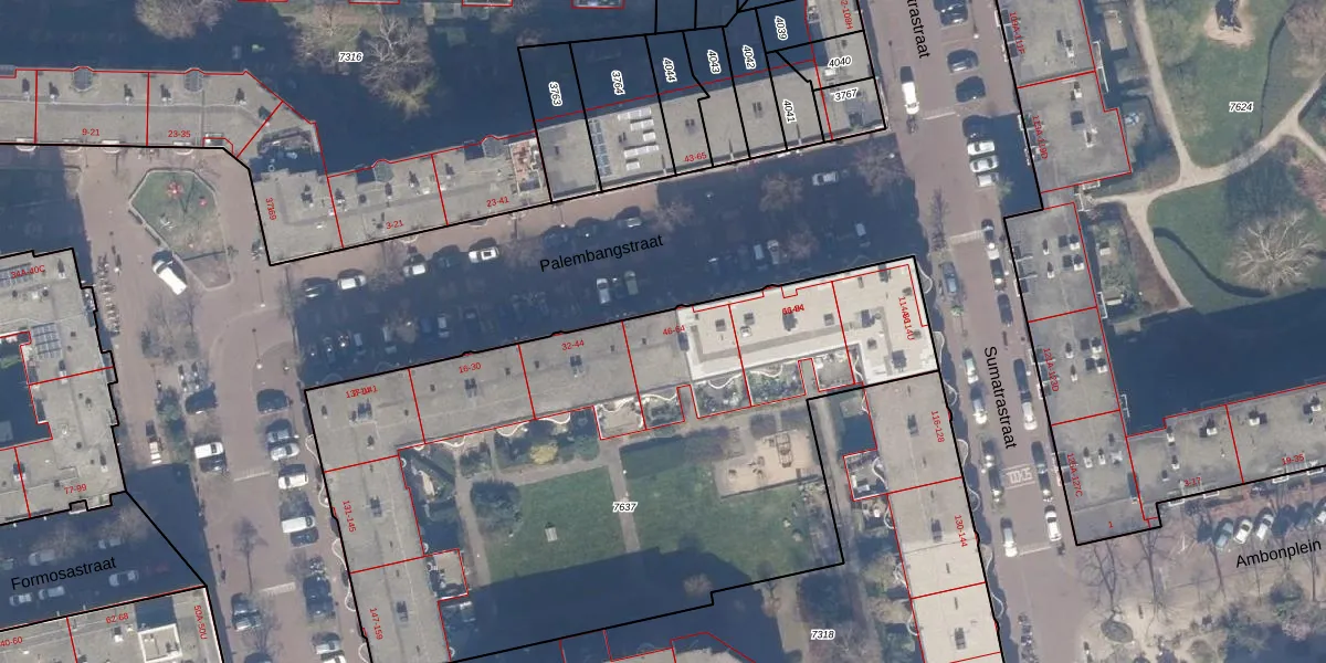 Palembangstraat 50 is gelegen op kadastraal perceel ASD19W7637. Deze kadastrale aanduiding is uniek en wordt gebruikt door het Kadaster om eigendomsrechten en andere zakelijke rechten vast te leggen. Het perceel maakt onderdeel uit van de kadastrale gemeente Amsterdam.