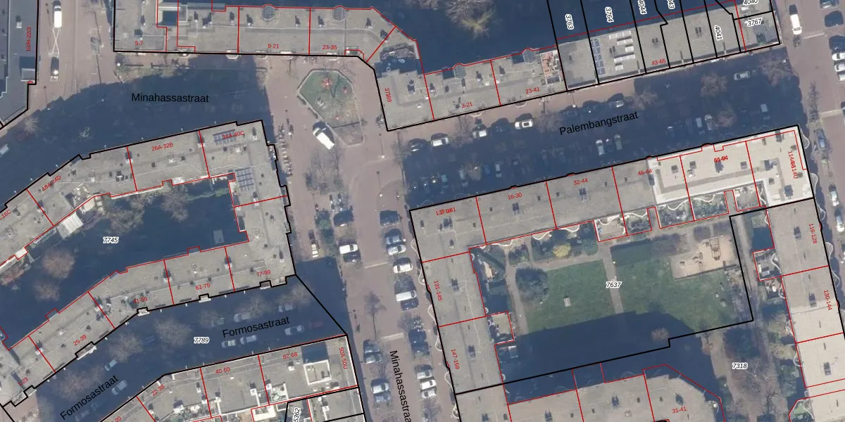 Palembangstraat 6 is gelegen op kadastraal perceel ASD19W7637. Deze kadastrale aanduiding is uniek en wordt gebruikt door het Kadaster om eigendomsrechten en andere zakelijke rechten vast te leggen. Het perceel maakt onderdeel uit van de kadastrale gemeente Amsterdam.