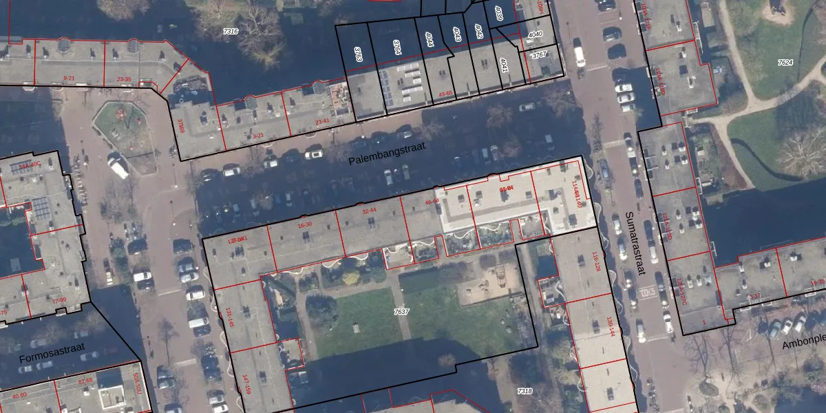 Palembangstraat 62 is gelegen op kadastraal perceel ASD19W7637. Deze kadastrale aanduiding is uniek en wordt gebruikt door het Kadaster om eigendomsrechten en andere zakelijke rechten vast te leggen. Het perceel maakt onderdeel uit van de kadastrale gemeente Amsterdam.