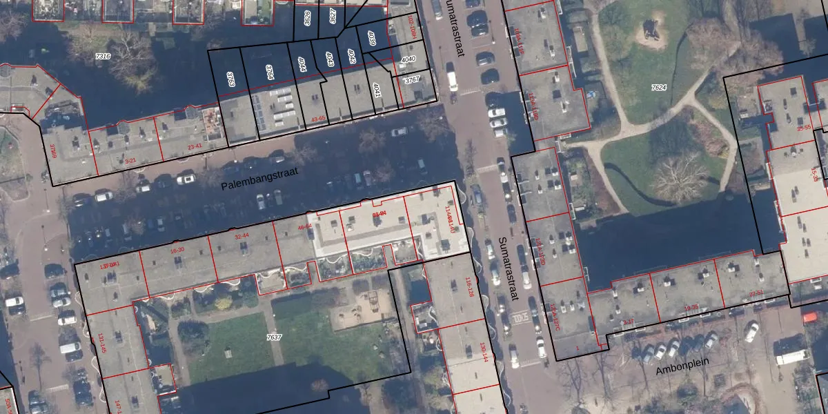 Het perceel waarop Palembangstraat 86 staat heeft een oppervlakte van 3613 m². Dit is een zeer groot perceel. De perceeloppervlakte wordt geregistreerd door het Kadaster. Gedetailleerde informatie over de maten van dit perceel kunt u vinden in het rapport Kadastrale kaart met maatvoering van Palembangstraat 86.