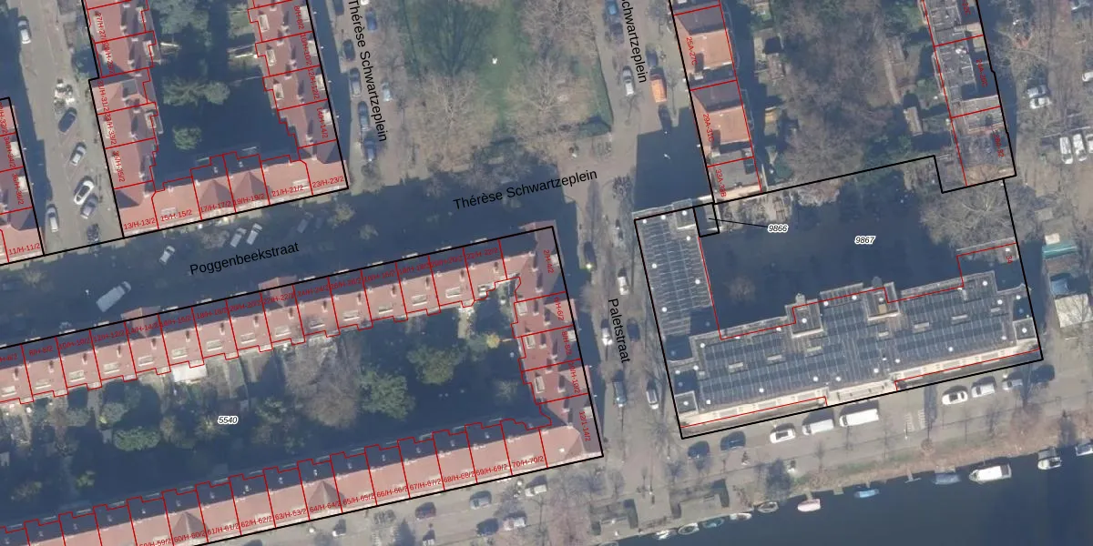 Het adres is gelegen op perceel 5540 in de sectie V en de kadastrale gemeente Amsterdam. De kadastrale aanduiding is aldus ASD18-V-5540. De oppervlakte van het perceel is 5245 m². Dat is groter dan gemiddeld in Amsterdam, waar de gemiddelde perceeloppervlakte op 559,23 m² ligt. Het kleinste perceel in de kadastrale gemeente is 0 m² groot. De grootste perceeloppervlakte is 12,5 ha. Er zijn 131 adressen aanwezig op het perceel. In de Basisregistratie Kadaster (BRK) werden de grenzen van het perceel geregistreerd op 09-08-2006.