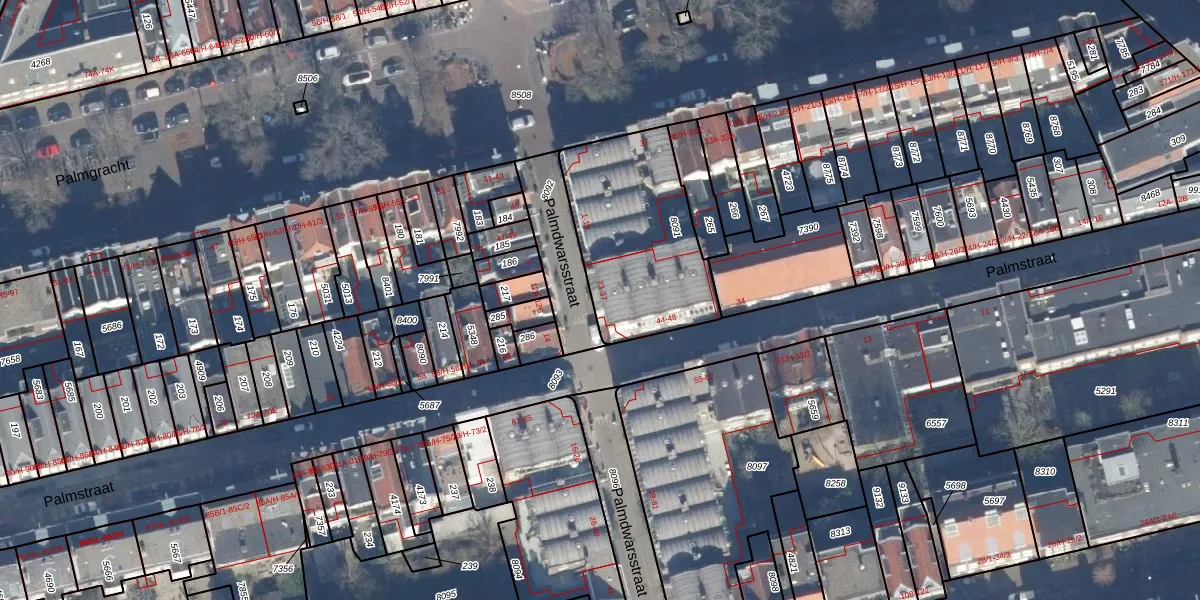 Palmdwarsstraat 35 is gelegen op kadastraal perceel ASD08L8091. Deze kadastrale aanduiding is uniek en wordt gebruikt door het Kadaster om eigendomsrechten en andere zakelijke rechten vast te leggen. Het perceel maakt onderdeel uit van de kadastrale gemeente Amsterdam.