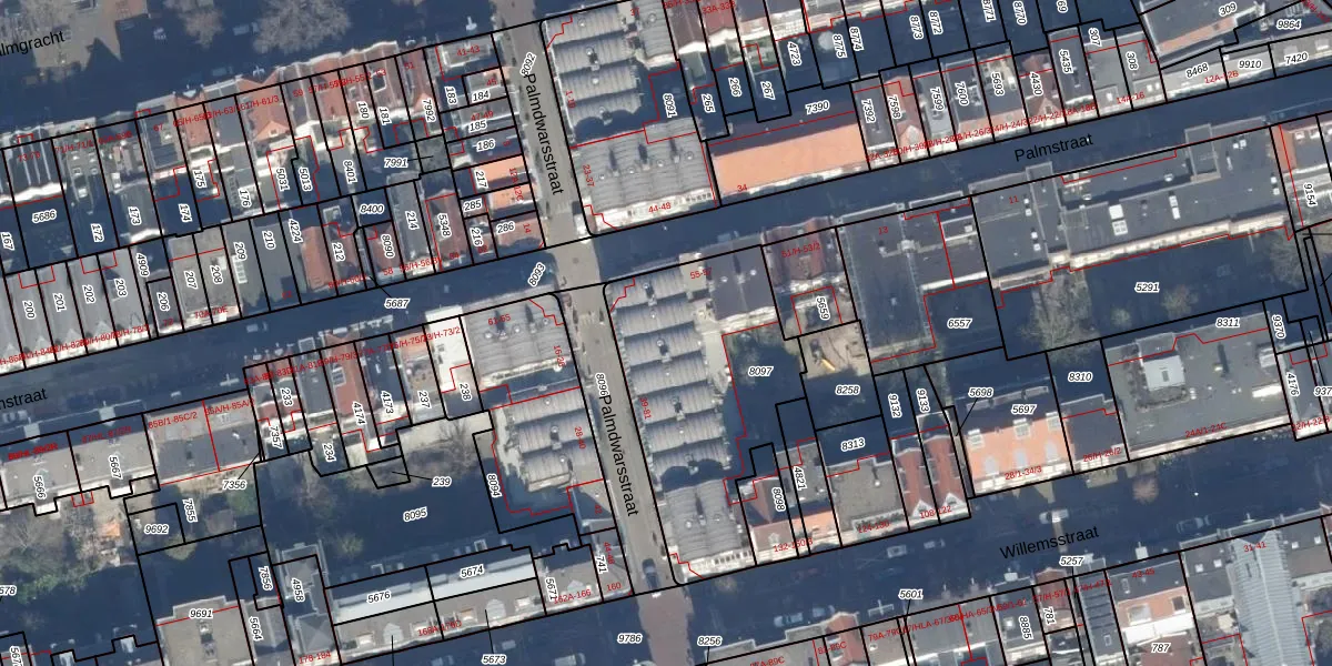 Het perceel waarop Palmdwarsstraat 41 staat heeft een oppervlakte van 982 m². Dit is een groot perceel. De perceeloppervlakte wordt geregistreerd door het Kadaster. Gedetailleerde informatie over de maten van dit perceel kunt u vinden in het rapport Kadastrale kaart met maatvoering van Palmdwarsstraat 41.