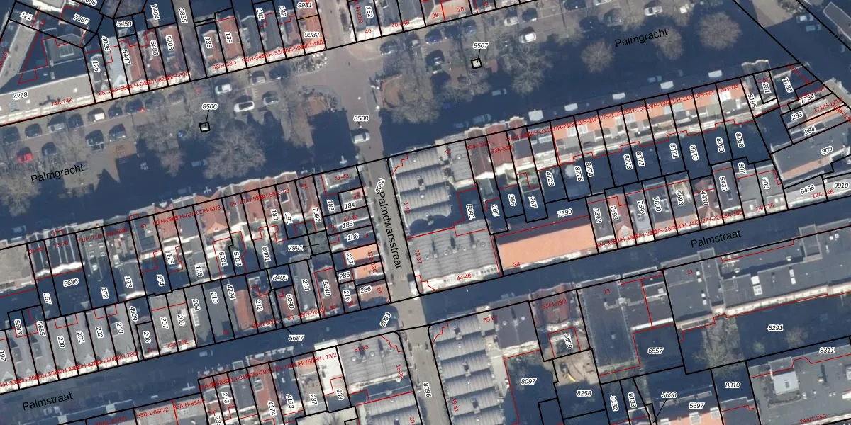 Het perceel waarop Palmdwarsstraat 5 staat heeft een oppervlakte van 660 m². Dit is een groot perceel. De perceeloppervlakte wordt geregistreerd door het Kadaster. Gedetailleerde informatie over de maten van dit perceel kunt u vinden in het rapport Kadastrale kaart met maatvoering van Palmdwarsstraat 5.
