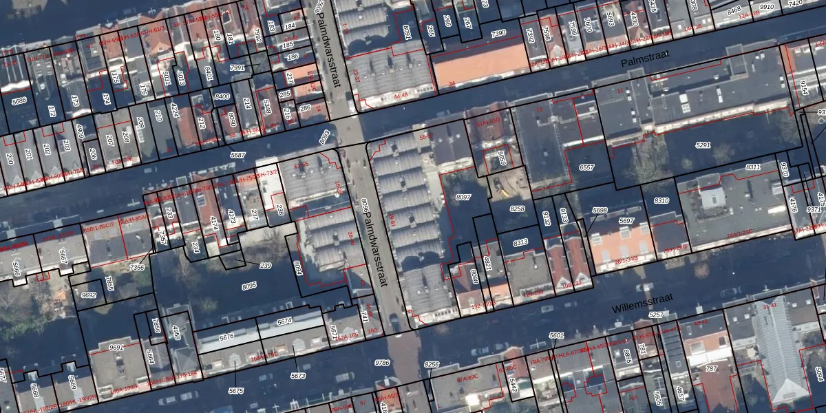 Het perceel waarop Palmdwarsstraat 55 staat heeft een oppervlakte van 982 m². Dit is een groot perceel. De perceeloppervlakte wordt geregistreerd door het Kadaster. Gedetailleerde informatie over de maten van dit perceel kunt u vinden in het rapport Kadastrale kaart met maatvoering van Palmdwarsstraat 55.