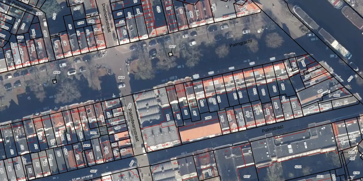 Het perceel waarop Palmgracht 33-B staat heeft een oppervlakte van 97 m². Dit is een klein perceel. De perceeloppervlakte wordt geregistreerd door het Kadaster. Gedetailleerde informatie over de maten van dit perceel kunt u vinden in het rapport Kadastrale kaart met maatvoering van Palmgracht 33-B.