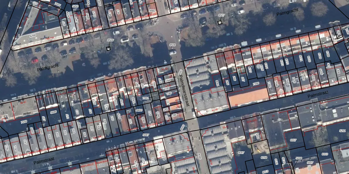 Het perceel waarop Palmgracht 47 staat heeft een oppervlakte van 46 m². Dit is een klein perceel. De perceeloppervlakte wordt geregistreerd door het Kadaster. Gedetailleerde informatie over de maten van dit perceel kunt u vinden in het rapport Kadastrale kaart met maatvoering van Palmgracht 47.