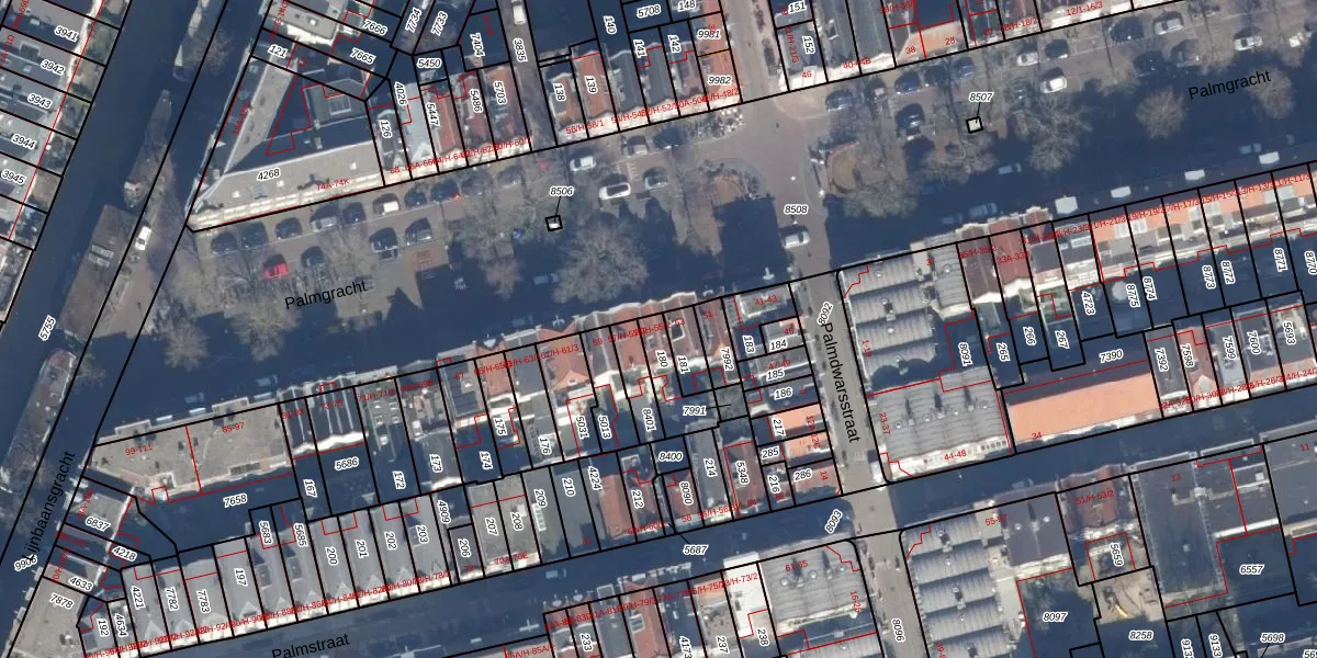 Palmgracht 55-H is gelegen op kadastraal perceel ASD08L180. Deze kadastrale aanduiding is uniek en wordt gebruikt door het Kadaster om eigendomsrechten en andere zakelijke rechten vast te leggen. Het perceel maakt onderdeel uit van de kadastrale gemeente Amsterdam.