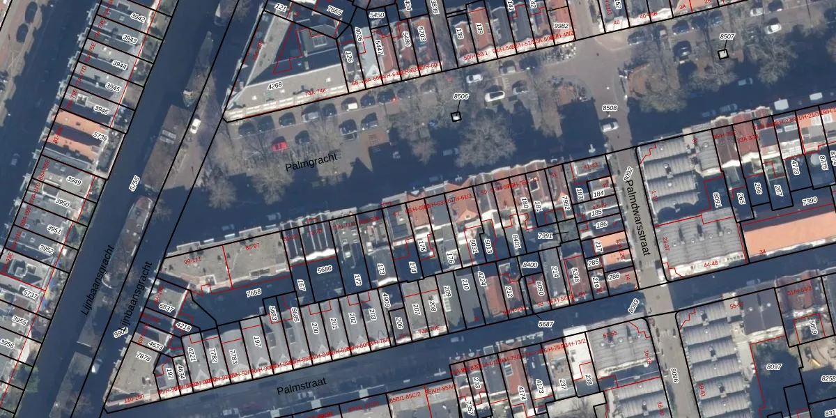 Het perceel waarop Palmgracht 65-2 staat heeft een oppervlakte van 86 m². Dit is een klein perceel. De perceeloppervlakte wordt geregistreerd door het Kadaster. Gedetailleerde informatie over de maten van dit perceel kunt u vinden in het rapport Kadastrale kaart met maatvoering van Palmgracht 65-2.