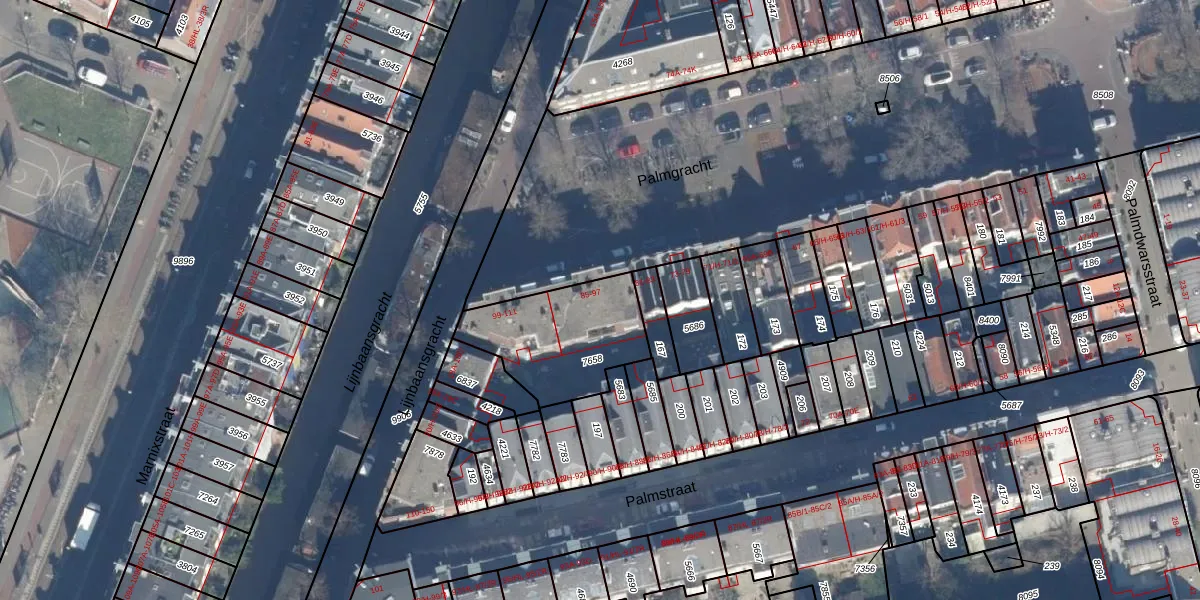 Het perceel waarop Palmgracht 91 staat heeft een oppervlakte van 447 m². Dit is een groot perceel. De perceeloppervlakte wordt geregistreerd door het Kadaster. Gedetailleerde informatie over de maten van dit perceel kunt u vinden in het rapport Kadastrale kaart met maatvoering van Palmgracht 91.