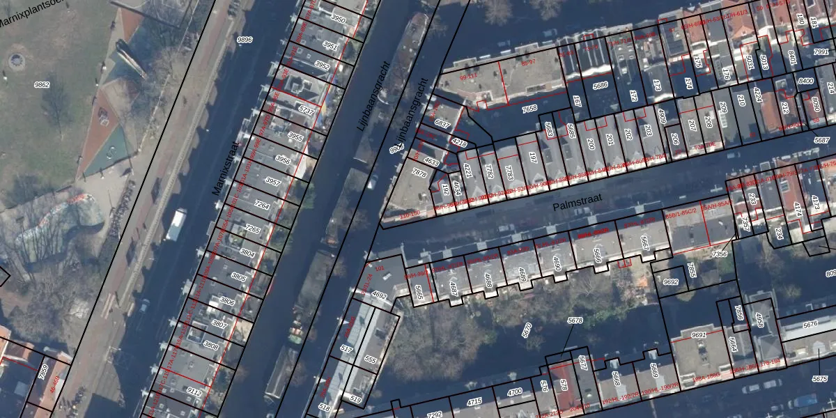 Palmstraat 134 is gelegen op kadastraal perceel ASD08L7878. Deze kadastrale aanduiding is uniek en wordt gebruikt door het Kadaster om eigendomsrechten en andere zakelijke rechten vast te leggen. Het perceel maakt onderdeel uit van de kadastrale gemeente Amsterdam.