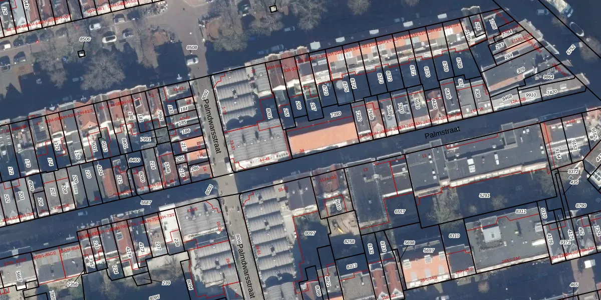 Palmstraat 34 is gelegen op kadastraal perceel ASD08L7390. Deze kadastrale aanduiding is uniek en wordt gebruikt door het Kadaster om eigendomsrechten en andere zakelijke rechten vast te leggen. Het perceel maakt onderdeel uit van de kadastrale gemeente Amsterdam.