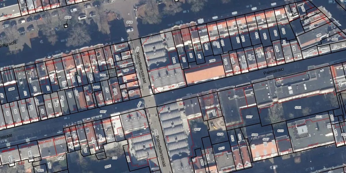 Het perceel waarop Palmstraat 46 staat heeft een oppervlakte van 660 m². Dit is een groot perceel. De perceeloppervlakte wordt geregistreerd door het Kadaster. Gedetailleerde informatie over de maten van dit perceel kunt u vinden in het rapport Kadastrale kaart met maatvoering van Palmstraat 46.