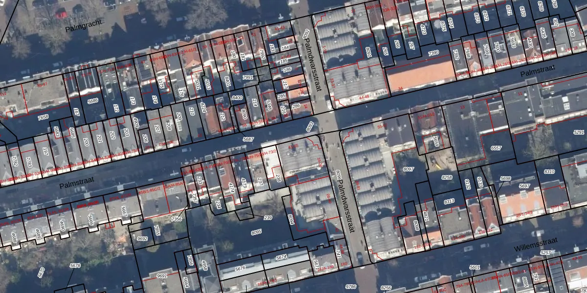 Het perceel waarop Palmstraat 63 staat heeft een oppervlakte van 557 m². Dit is een groot perceel. De perceeloppervlakte wordt geregistreerd door het Kadaster. Gedetailleerde informatie over de maten van dit perceel kunt u vinden in het rapport Kadastrale kaart met maatvoering van Palmstraat 63.