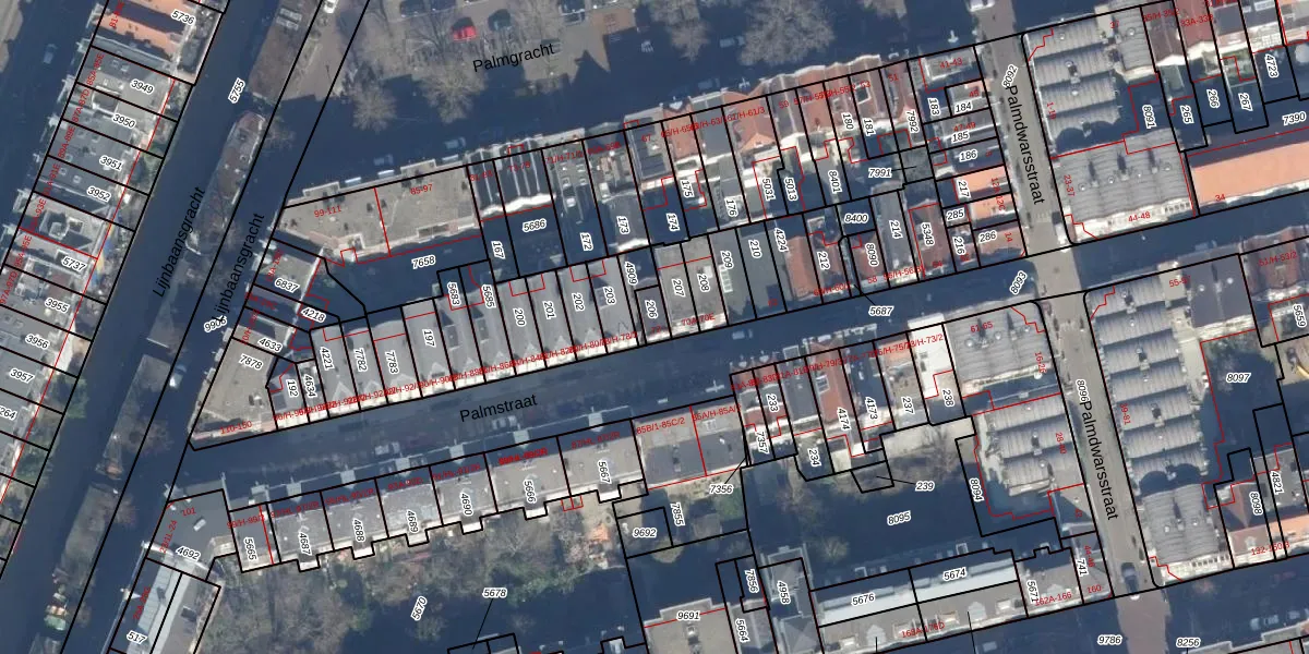 Het perceel waarop Palmstraat 72 staat heeft een oppervlakte van 33 m². Dit is een klein perceel. De perceeloppervlakte wordt geregistreerd door het Kadaster. Gedetailleerde informatie over de maten van dit perceel kunt u vinden in het rapport Kadastrale kaart met maatvoering van Palmstraat 72.