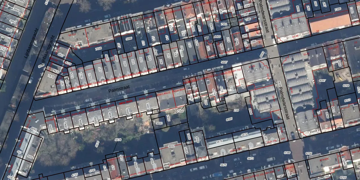 Het perceel waarop Palmstraat 85-A-H staat heeft een oppervlakte van 323 m². Dit is een groot perceel. De perceeloppervlakte wordt geregistreerd door het Kadaster. Gedetailleerde informatie over de maten van dit perceel kunt u vinden in het rapport Kadastrale kaart met maatvoering van Palmstraat 85-A-H.