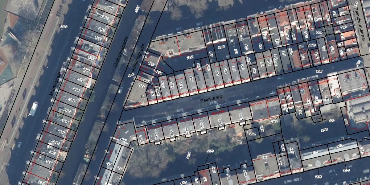 Het perceel waarop Palmstraat 92-3 staat heeft een oppervlakte van 78 m². Dit is een klein perceel. De perceeloppervlakte wordt geregistreerd door het Kadaster. Gedetailleerde informatie over de maten van dit perceel kunt u vinden in het rapport Kadastrale kaart met maatvoering van Palmstraat 92-3.