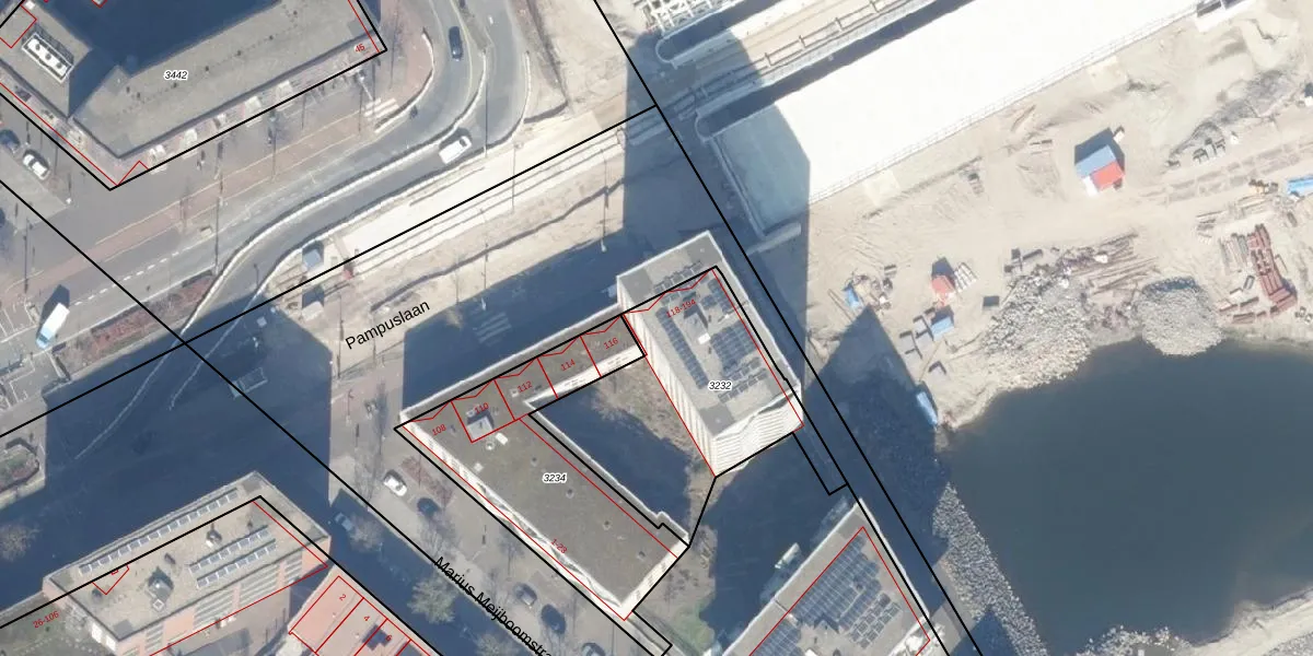 Pampuslaan 142 is gelegen op kadastraal perceel ASD41AU3232. Deze kadastrale aanduiding is uniek en wordt gebruikt door het Kadaster om eigendomsrechten en andere zakelijke rechten vast te leggen. Het perceel maakt onderdeel uit van de kadastrale gemeente Amsterdam.