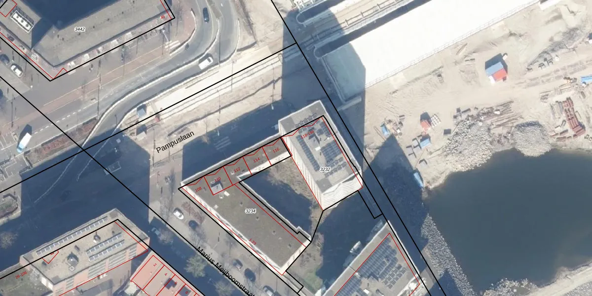 Pampuslaan 160 is gelegen op kadastraal perceel ASD41AU3232. Deze kadastrale aanduiding is uniek en wordt gebruikt door het Kadaster om eigendomsrechten en andere zakelijke rechten vast te leggen. Het perceel maakt onderdeel uit van de kadastrale gemeente Amsterdam.