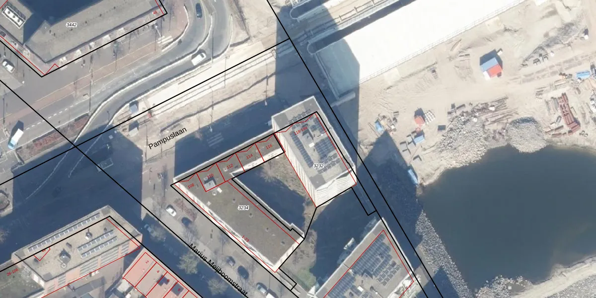 Pampuslaan 180 is gelegen op kadastraal perceel ASD41AU3232. Deze kadastrale aanduiding is uniek en wordt gebruikt door het Kadaster om eigendomsrechten en andere zakelijke rechten vast te leggen. Het perceel maakt onderdeel uit van de kadastrale gemeente Amsterdam.