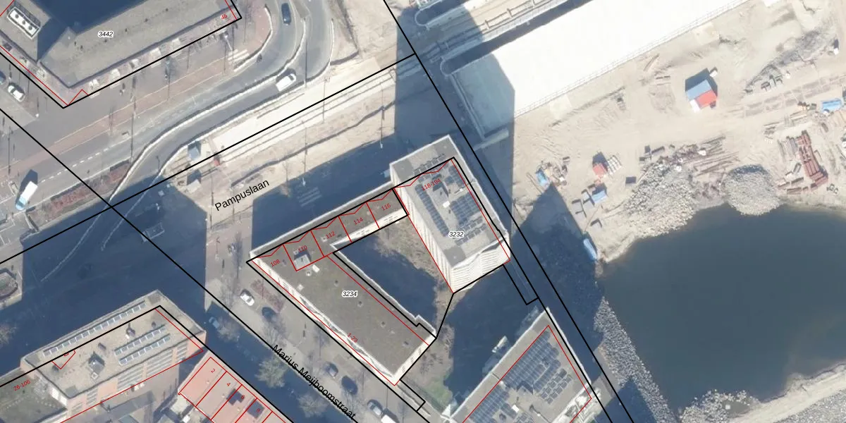 Pampuslaan 182 is gelegen op kadastraal perceel ASD41AU3232. Deze kadastrale aanduiding is uniek en wordt gebruikt door het Kadaster om eigendomsrechten en andere zakelijke rechten vast te leggen. Het perceel maakt onderdeel uit van de kadastrale gemeente Amsterdam.