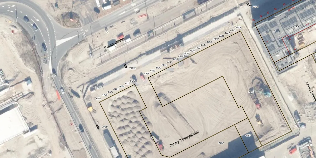 Pampuslaan 202 is gelegen op kadastraal perceel ASD41AU4446. Deze kadastrale aanduiding is uniek en wordt gebruikt door het Kadaster om eigendomsrechten en andere zakelijke rechten vast te leggen. Het perceel maakt onderdeel uit van de kadastrale gemeente Amsterdam.
