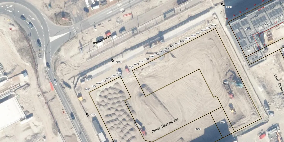 Pampuslaan 210 is gelegen op kadastraal perceel ASD41AU4446. Deze kadastrale aanduiding is uniek en wordt gebruikt door het Kadaster om eigendomsrechten en andere zakelijke rechten vast te leggen. Het perceel maakt onderdeel uit van de kadastrale gemeente Amsterdam.