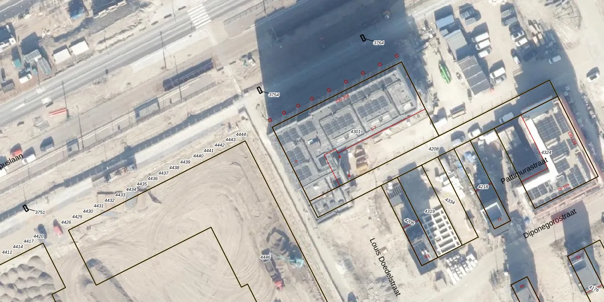 Het adres ligt op het perceel ASD41-AU-4301, dat zich in de kadastrale gemeente Amsterdam bevindt. Het perceel is 1320 m² groot. Dat is kleiner dan de gemiddelde perceeloppervlakte in Amsterdam, dat op 7285,32 m² ligt. De grootste perceeloppervlakte in de kadastrale gemeente is 2,75 km². De kleinste oppervlakte bedraagt 0 m². Er zijn 67 adressen aanwezig op het perceel. De laatste wijziging in het de Basisregistratie Kadaster (BRK) was op 09-05-2023.