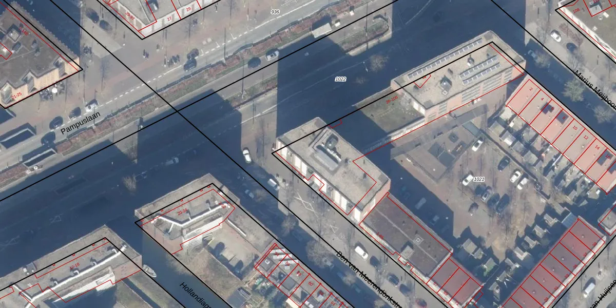 Pampuslaan 32 is gelegen op kadastraal perceel ASD41AU1021. Deze kadastrale aanduiding is uniek en wordt gebruikt door het Kadaster om eigendomsrechten en andere zakelijke rechten vast te leggen. Het perceel maakt onderdeel uit van de kadastrale gemeente Amsterdam.