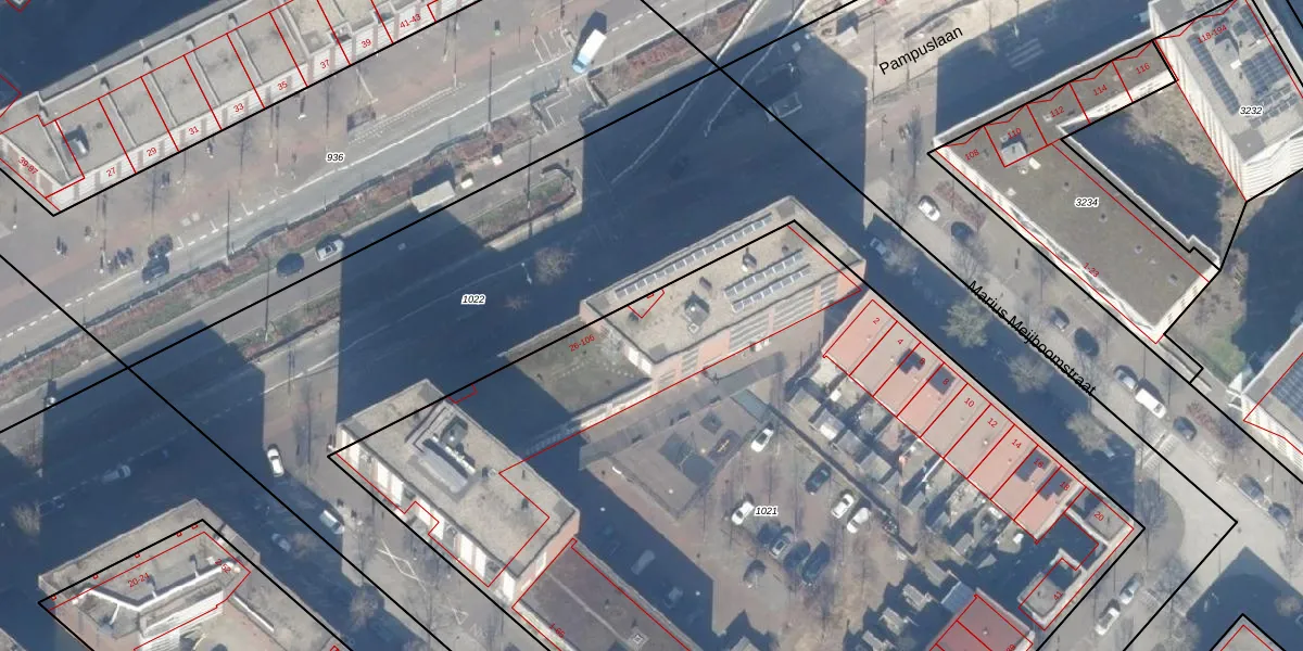 Pampuslaan 36 is gelegen op kadastraal perceel ASD41AU1021. Deze kadastrale aanduiding is uniek en wordt gebruikt door het Kadaster om eigendomsrechten en andere zakelijke rechten vast te leggen. Het perceel maakt onderdeel uit van de kadastrale gemeente Amsterdam.