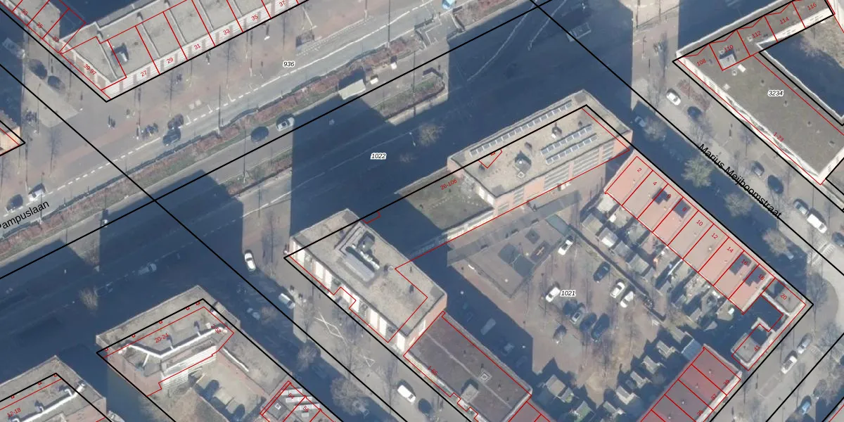 Pampuslaan 82 is gelegen op kadastraal perceel ASD41AU1021. Deze kadastrale aanduiding is uniek en wordt gebruikt door het Kadaster om eigendomsrechten en andere zakelijke rechten vast te leggen. Het perceel maakt onderdeel uit van de kadastrale gemeente Amsterdam.