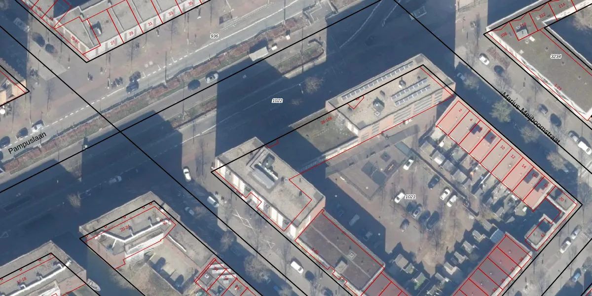 Pampuslaan 94 is gelegen op kadastraal perceel ASD41AU1021. Deze kadastrale aanduiding is uniek en wordt gebruikt door het Kadaster om eigendomsrechten en andere zakelijke rechten vast te leggen. Het perceel maakt onderdeel uit van de kadastrale gemeente Amsterdam.