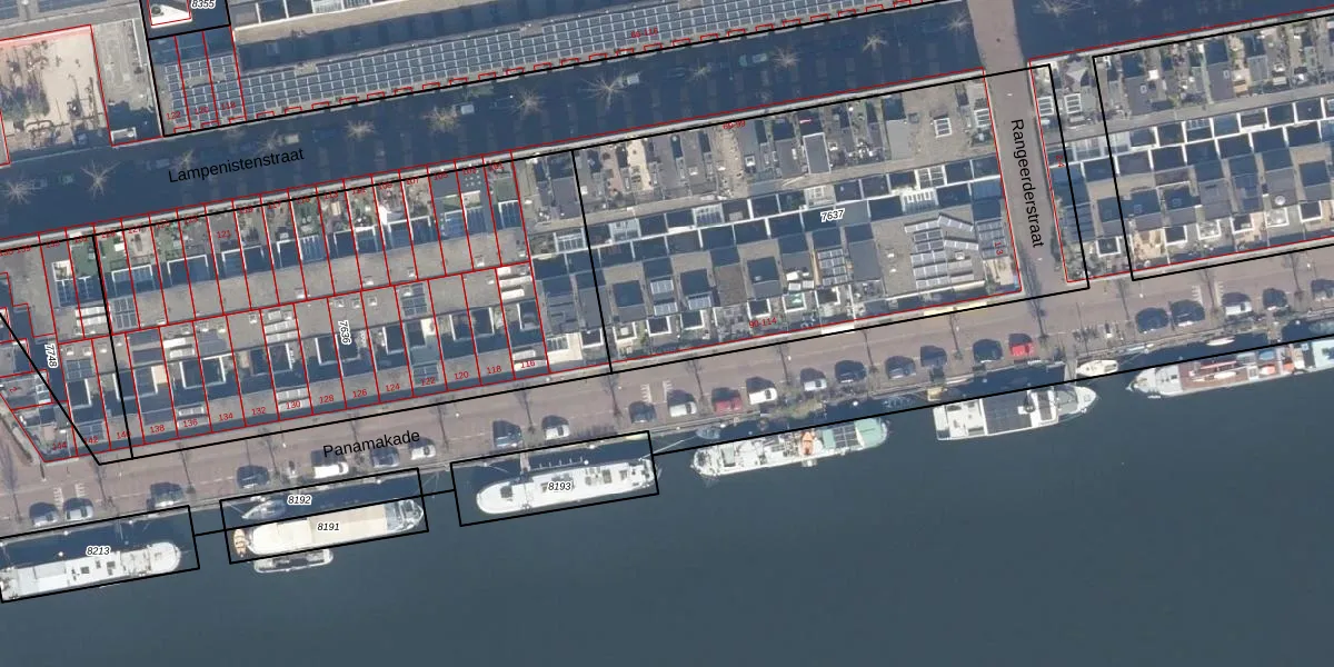 Panamakade 108 is gelegen op kadastraal perceel ASD02A7637. Deze kadastrale aanduiding is uniek en wordt gebruikt door het Kadaster om eigendomsrechten en andere zakelijke rechten vast te leggen. Het perceel maakt onderdeel uit van de kadastrale gemeente Amsterdam.