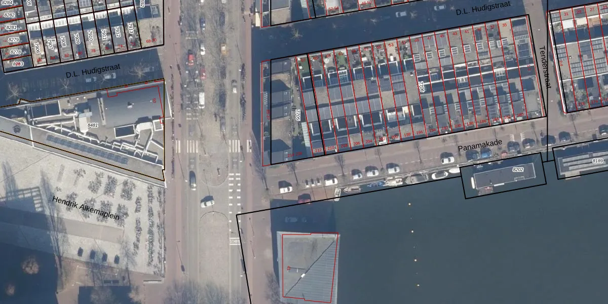 Het adres is gelegen op perceel 7705 in de sectie A en de kadastrale gemeente Amsterdam. De kadastrale aanduiding is aldus ASD02-A-7705. Het perceel is 510 m² groot. Dat is kleiner dan de gemiddelde perceeloppervlakte in Amsterdam, dat op 2763,93 m² ligt. Het grootste perceel in de kadastrale gemeente is 14,3 ha. Het kleinste perceel heeft een oppervlakte van 0 m². Op het perceel liggen in totaal 16 adressen. In de Basisregistratie Kadaster (BRK) werden de grenzen van het perceel geregistreerd op 11-01-2012.