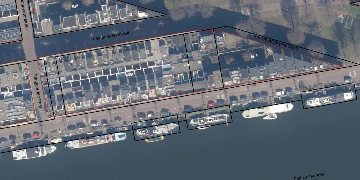 Het adres is gelegen op perceel 7638 in de sectie A en de kadastrale gemeente Amsterdam. De kadastrale aanduiding is aldus ASD02-A-7638. Het perceel is 2455 m² groot. Dat is kleiner dan de gemiddelde perceeloppervlakte in Amsterdam, dat op 2767,13 m² ligt. Het kleinste perceel in de kadastrale gemeente is 0 m² groot. De grootste perceeloppervlakte is 14,3 ha. Op het perceel liggen in totaal 31 adressen. De huidige grenzen van het perceel zijn digitaal in de Basisregistratie Kadaster (BRK) geregistreerd op 11-10-2006.