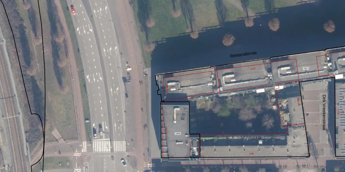 Het adres ligt op het perceel ASD02-A-7807, dat zich in de kadastrale gemeente Amsterdam bevindt. De oppervlakte van het perceel is 1,3 ha. Dat is groter dan gemiddeld in Amsterdam, waar de gemiddelde perceeloppervlakte op 2763,93 m² ligt. De grootste perceeloppervlakte in de kadastrale gemeente is 14,3 ha. De kleinste oppervlakte bedraagt 0 m². Er zijn 381 adressen aanwezig op het perceel. In de Basisregistratie Kadaster (BRK) werden de grenzen van het perceel geregistreerd op 11-01-2012.